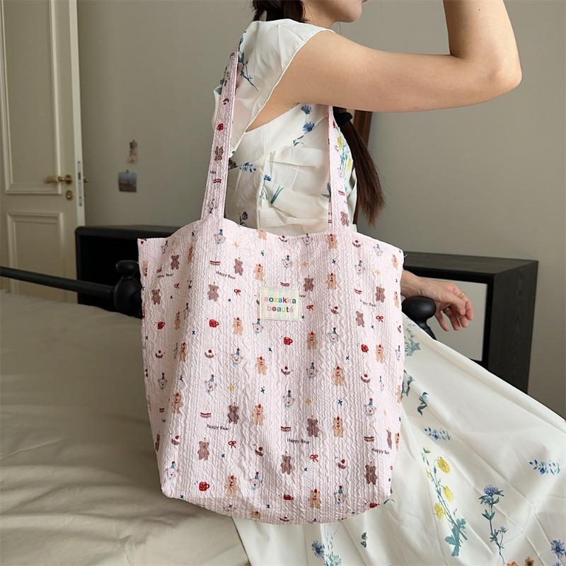 Wind Cartoon Embossed Canvas Bag Casual Shoulder Bag Cloth Bag Girl Out Shopping Handbag Bag