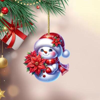 Christmas Ornaments Cartoon Snowman/Santa Xmas Tree Hanging Decoration Holiday Acrylic Decor for Christmas Valentine's Day Winter Party Supplies