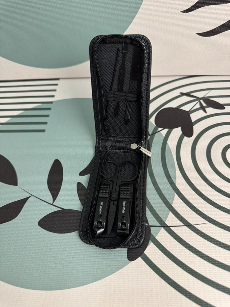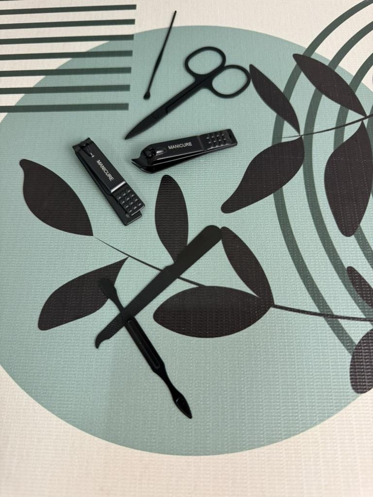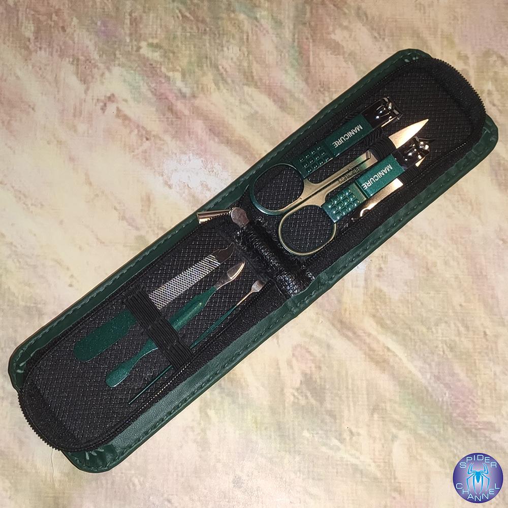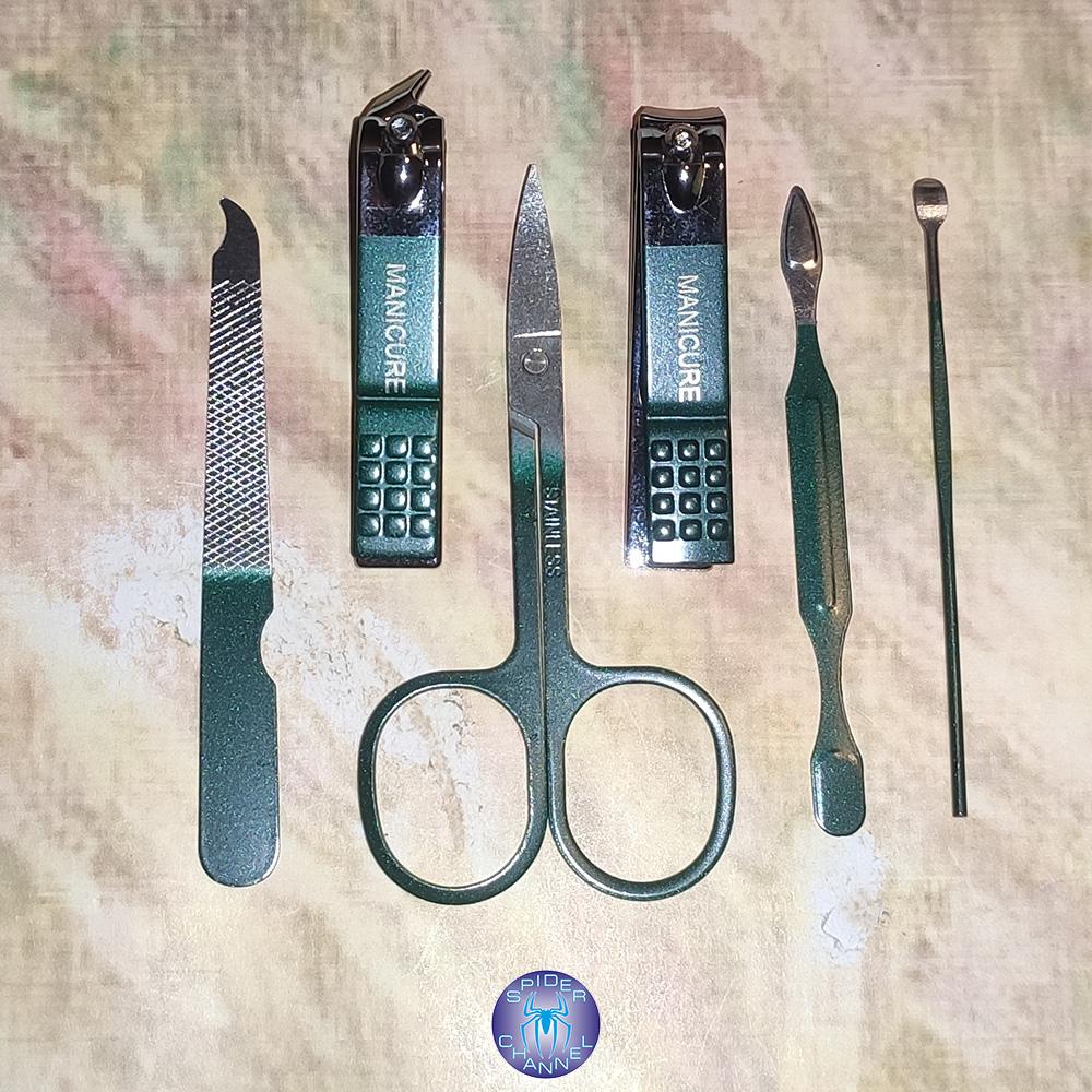 German Quality 6-piece Dark Green Portable Nail Care Set with Nippers, Scissors and Pedicure Tools