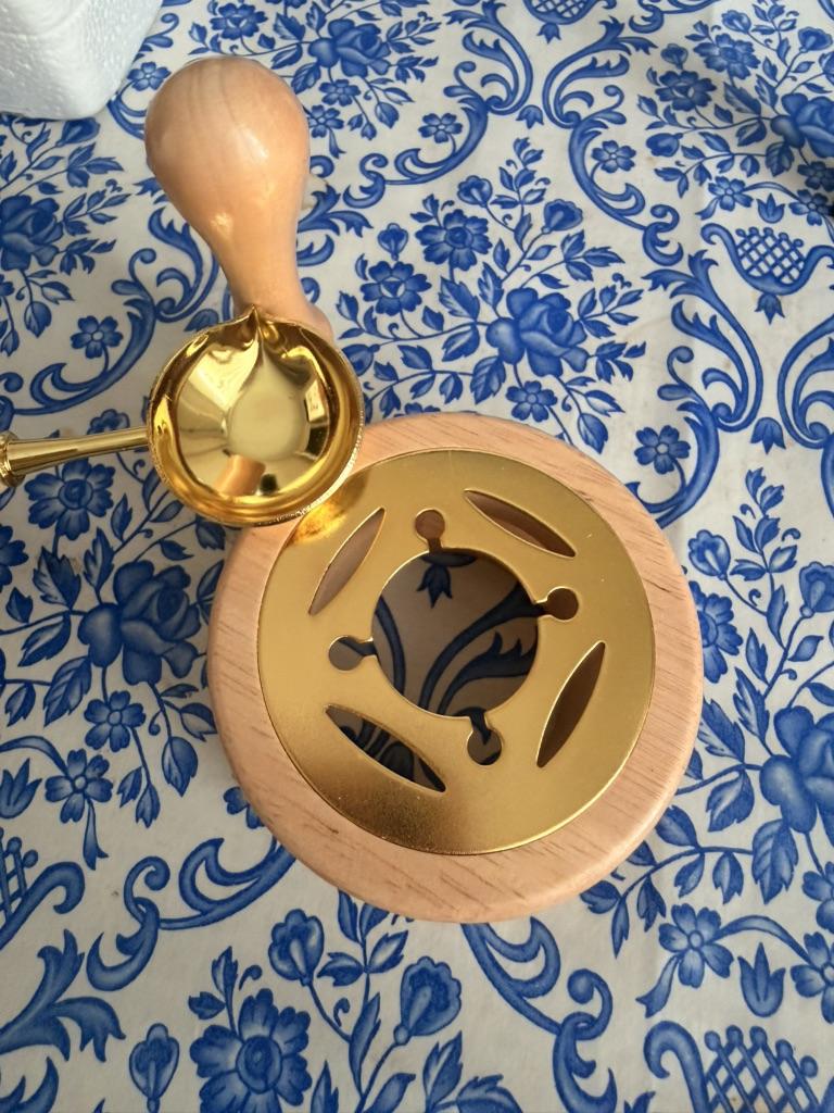 3Pcs Wax Seal Stamp Set Lacquer Furnace Solid Wood Stove Fire Paint Seal Supplies Wax Spoon Sealing Wax Melting Pot Craft