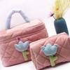 Cosmetic Bag Corduroy Tulip Large Capacity Portable Lovely Toiletry Storage Bag for Girls Pink Large