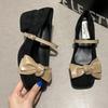 2025 New Suede Block Heel Single Shoes Autumn New Square Toe Shallow Mouth Bow Slip Strap Non-Slip Kitten Heels
