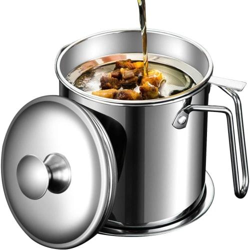 LEEKEY Oil Pot, 1.3L, Stainless Steel Oil Strainer, Filters Residue, Oil Filter, Deep Frying Oil Container, Tempura Oil Filter Cartridge, Oil Treatmen