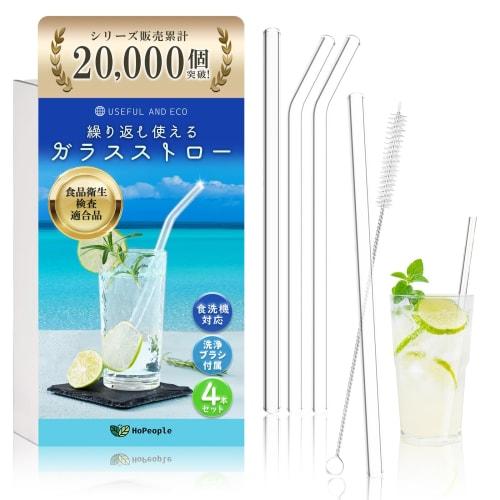 HoPeople My Straws, Food Sanitation Inspection Compliant, Set of 4, with Brush, Clear Glass