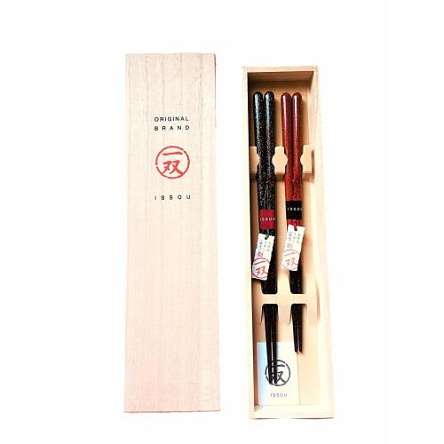 A Pair of High-quality Chopsticks In a Paulownia Wood Box, Perfect As a Wedding Gift. Features a Stylish Wakasa Lacquer Design and a Star-studded Patt