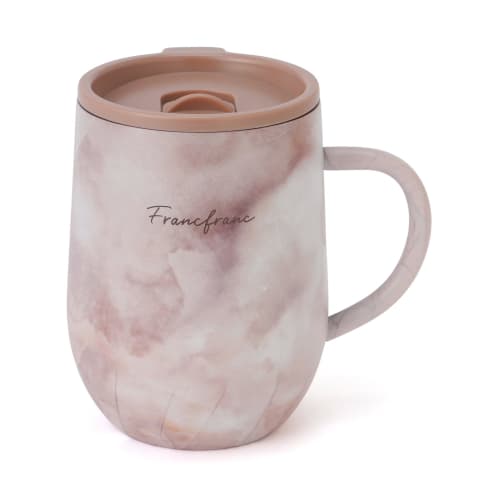Francfranc Stainless Steel Thermos Mug with Lid, 320ml, Marble Brown, Double-Sided Vacuum Insulation, Keeps Hot or Cold, Perfect for the Office or Gif
