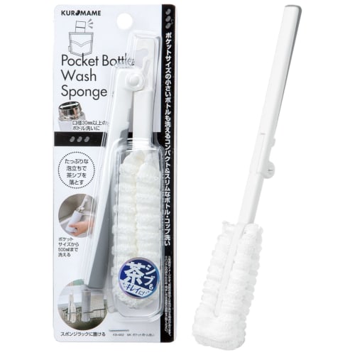 Mameita Bottle Washer, White (Extended) 3.5cm W X 3cm D X 28.2cm H, Mini Bottle Washer, Compact Storage, Foaming Net Sponge, KB-482
