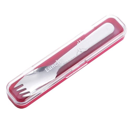 Takakuwa Metal Lunch Spoon with Case, Straight, Pink, 004652