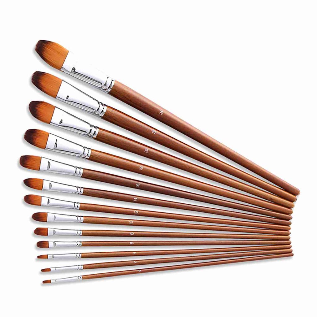 13pcs paint brushes with filbert tip in different size: 0#,2#,4#,6#,8#,10#,12#,14#,16#,18#,20#,22#,24#.