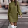 Women's Knitted Dress Turtleneck Winter Sweater Dress Knitted Dresses Midi Plain Long Wool Dress