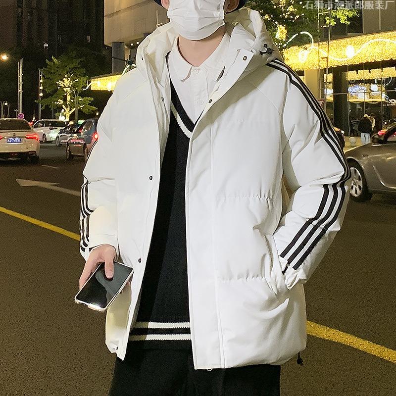 Winter New Hooded Three Bars Loose Cotton-padded Clothes Trendy Short Winter Cotton-padded Jackets Men's Versatile Jackets