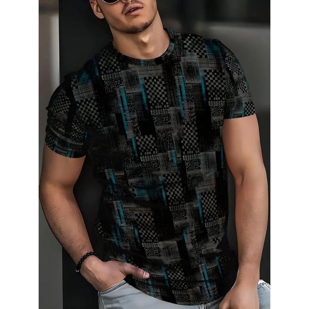 Men's 3D Pattern Activity T-shirt, Casual Micro Elastic Short Sleeved Round Neck T-shirt, Men's Clothing