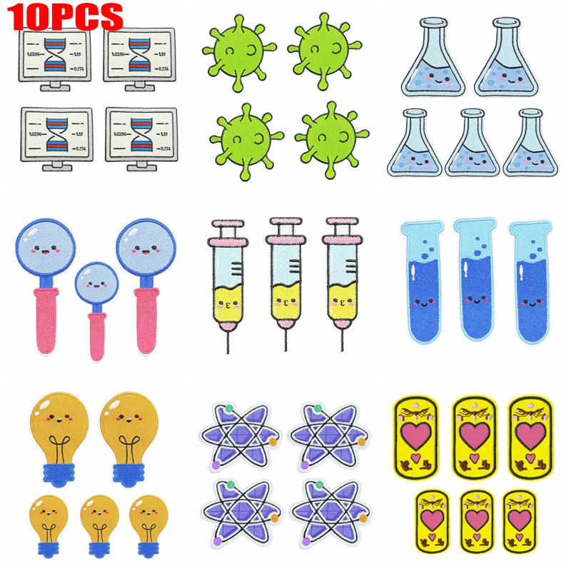 10pcs /Lots Laboratory Embroidered Patches Diy Cute Cartoon Patch Hats Bags Jackets Sew Embroidery Applique Clothing Decoration