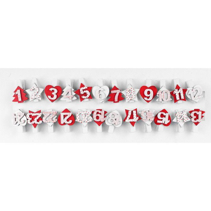 Pinces à linge pour Calendrier de l'Avent Noël 3,5 cm