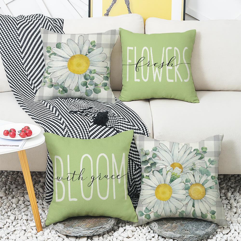 Vase Plant Linen Pillow Cover Home Sofa Bedside Home Letter Lumbar Cushion Cover Pillow