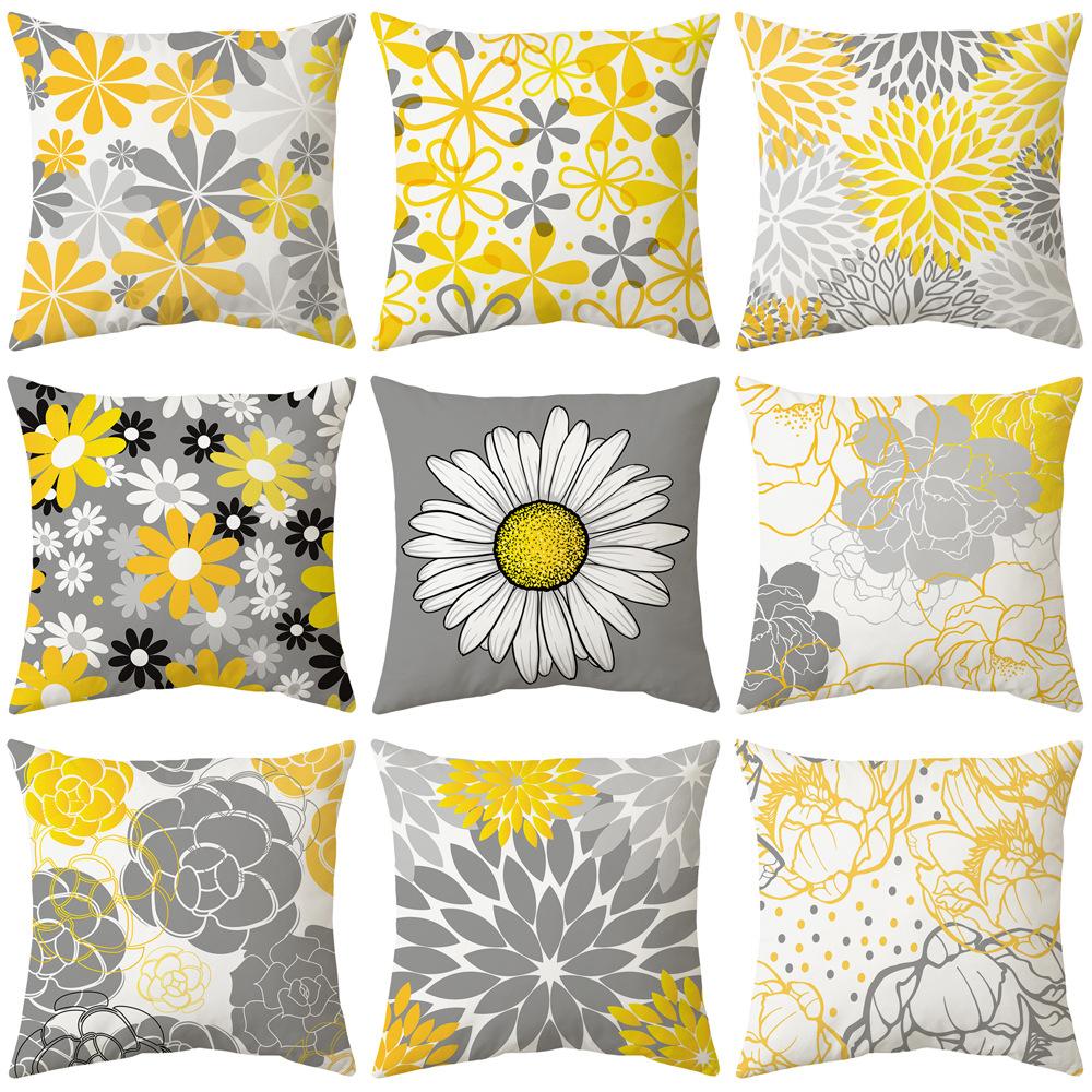 New Pillow Yellow Gray Geometric Flower Print Sofa Pillow Cover
