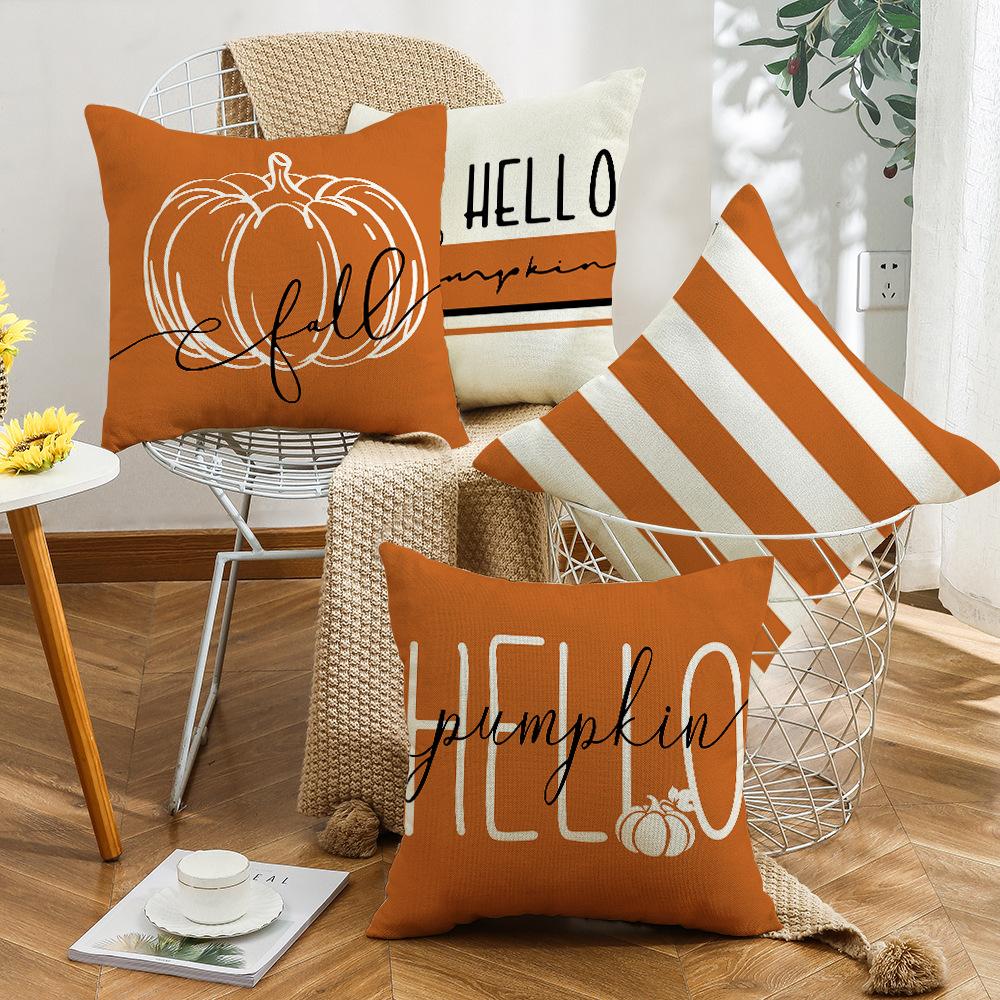 New Pillow Autumn Pumpkin Text Orange Linen Print Thanksgiving Home Sofa Pillow Cover
