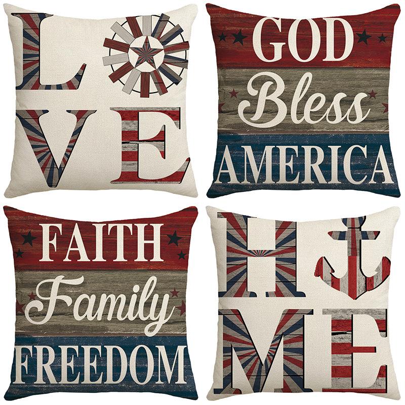New Independence Day Pillow Text Printed Cushion Cushion Linen Pillow Case Home Decoration