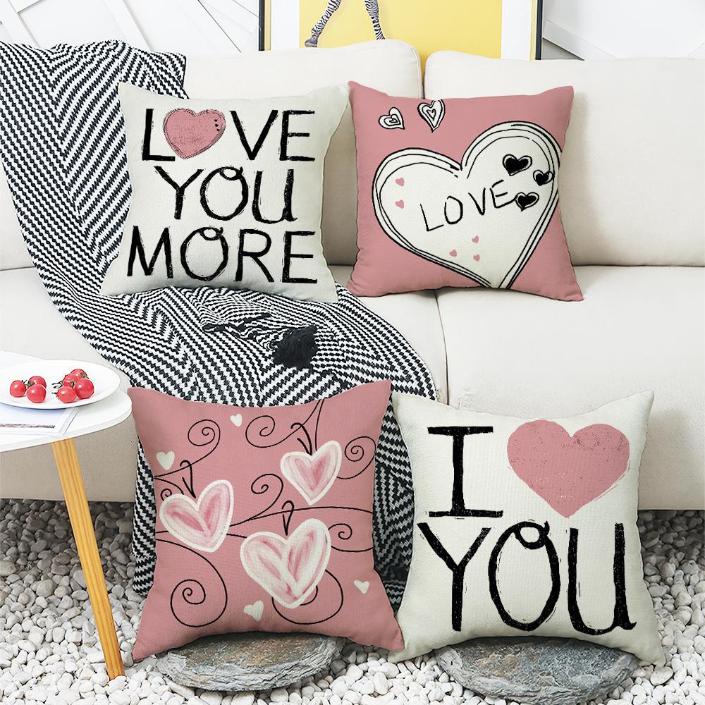 New Valentine's Day Pillow Case Pink Love Linen Print Couple Home Living Room Sofa Cushion Pillow