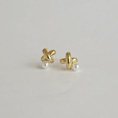 [ Modernlike / Headquarters Genuine ] 14K Gold-Filled Silver Pearl X Stick Curve Earrings
