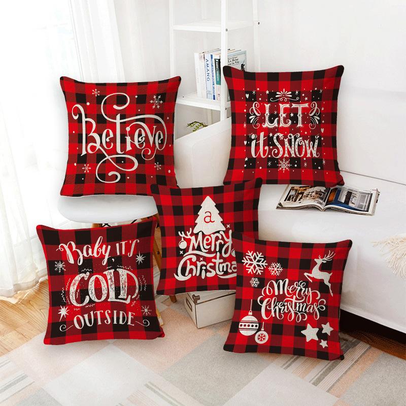 Furniture New Linen Pillow Christmas Pillowcase Sofa Cushion Home Lumbar Pillow