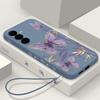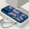 Case For Samsung Galaxy S24 S25 Ultra S23 S22 Ultra S21 S20 FE Butterfly Bamboo Pattern Lanyard Case For Samsung A56 A17 A26 A16 A36 A55 A54 A53 A15