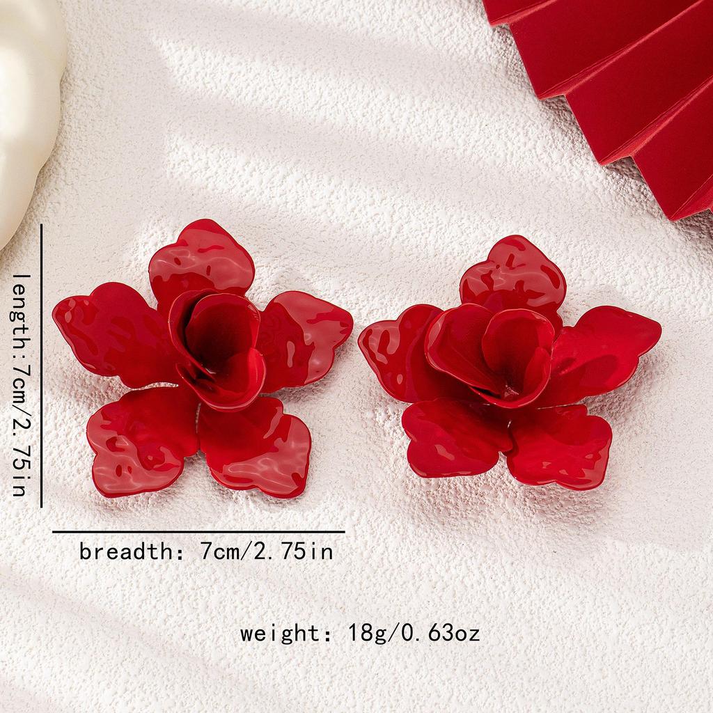 Retro Large Red Flower Earrings - Perfect for Parties