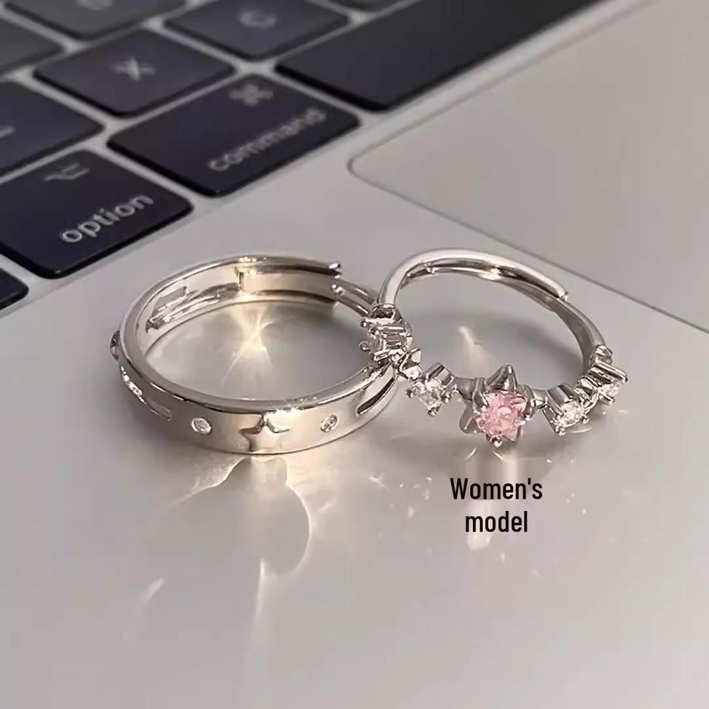 Pink Star Adjustable Couple Ring: Simple, Luxurious, Versatile Index Finger Rings for Men and Women