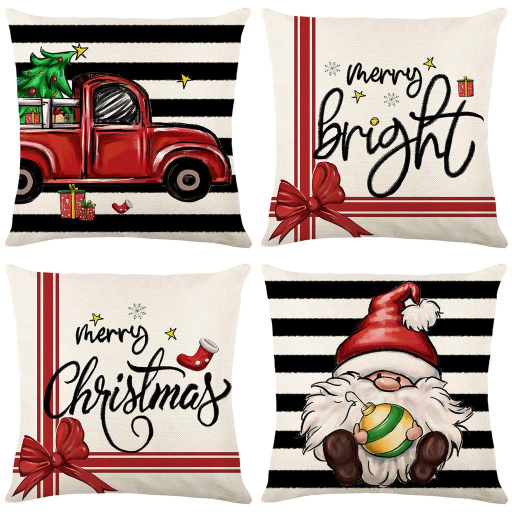 New Christmas Pillow Case Black and White Striped Letter Printed Polyester Home Living Room Sofa Cushion