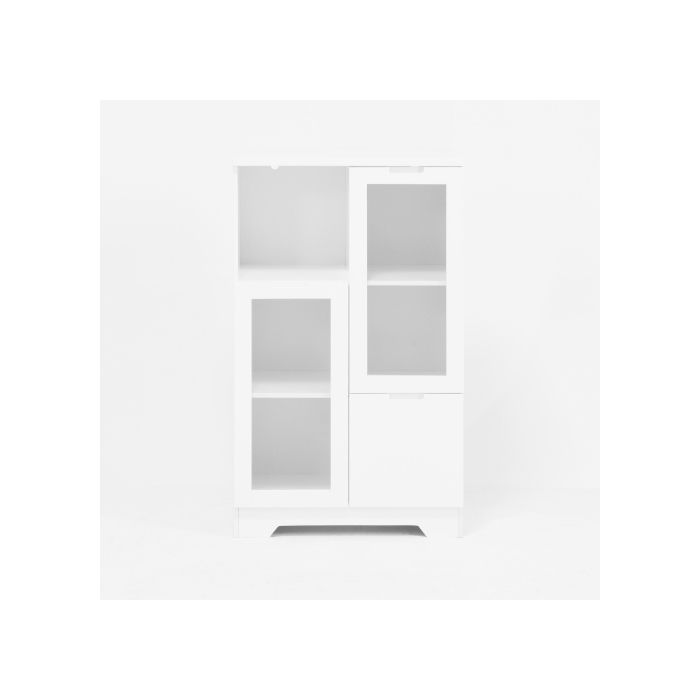 Armoire En MDF Laqué Avec Portes Vitrées Et Tiroir, Espace De Rangement Ouvert, Blanc, Chambre À Coucher, Salon