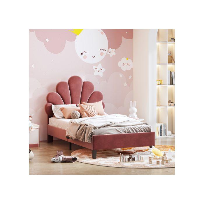Lit d'enfant - MUVOE - 90x200cm - Tête de lit fleur - Velours rouge haricot - Montage facile