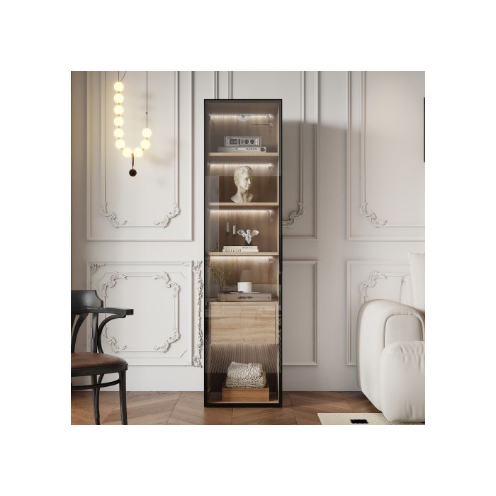 Armoire De Salle De Bains, Moyenne, Avec Bandeau Lumineux, Largeur 40 Cm, Avec 1 Grand Tiroir Et 1 Porte, Porte Vitrée