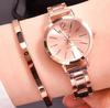 Women's Gold Steel Band Quartz Bracelet Watch with Thin Strap