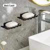 Wall-Mounted Punch-Free Soap Dish with Drain Rack & Hooks for Bathroom