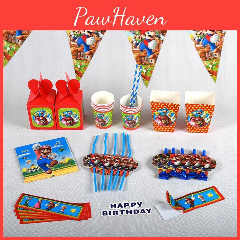Mario Themed Super Birthdy Party Supplies Decor Banner Cups Napkins Tablecloth
