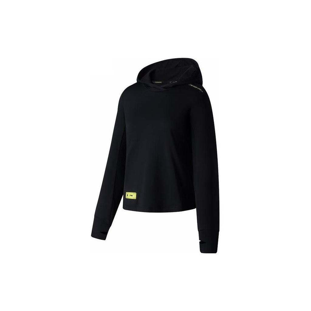 Li Ning Running Series Solid Color Logo Hoodie Long Sleeve T-Shirt Women Tops Black ATLT004-3