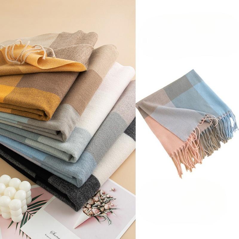 New Color Blocked Imitation Cashmere Plaid Scarf for Women In Winter Korean Version Versatile Couple Warm Scarf Men's Gift Trendy Shawl