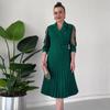 2024 Summer Women's Solid Color Mesh-Paneled Pleated Dress