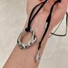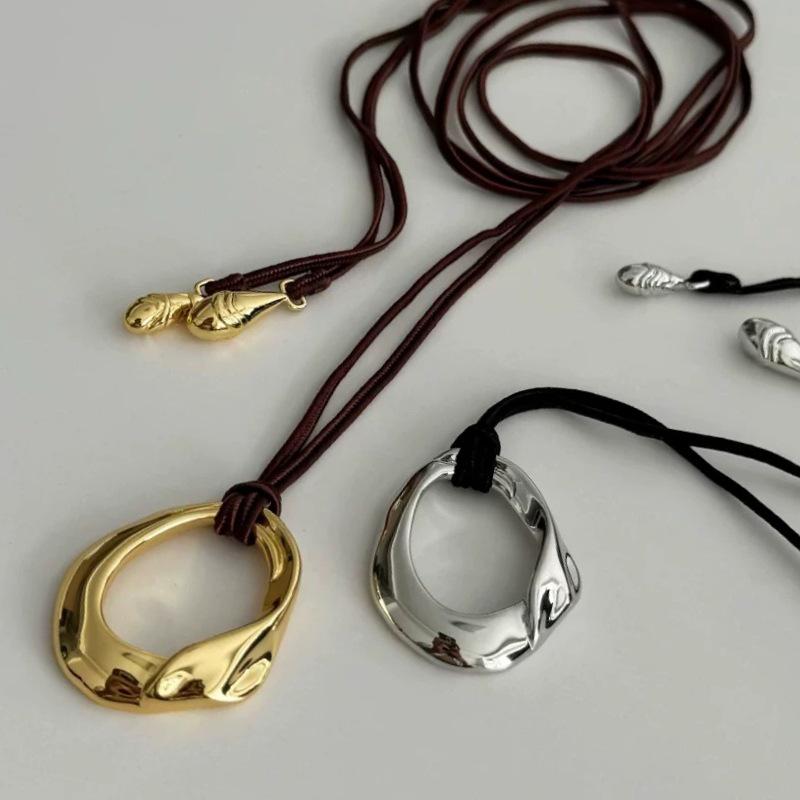 Women's Black Rope Pendant Necklace - Dong Jie Metal Circle, Long Sweater Chain, Vintage Luxury Style
