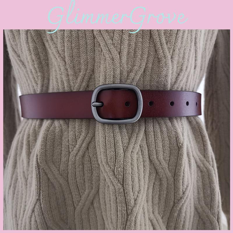 Girl Color Solid Fashionable Pure Leather Belt D Shaped Buckle Daily Casual Use