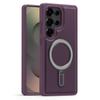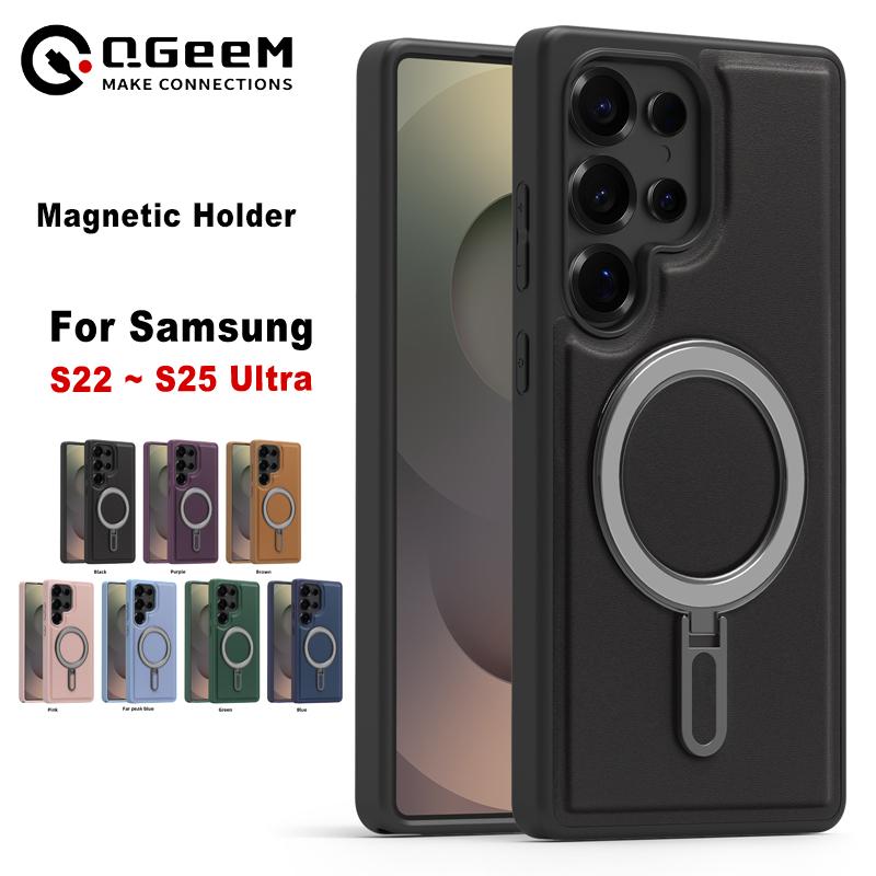 Magsafe Magnetic Metal Car Bracket Ring Luxury Matte Leather Phone Case For Samsung S22 S23 S24 S25 Ultra S24 Plus S25 FE Back Cover