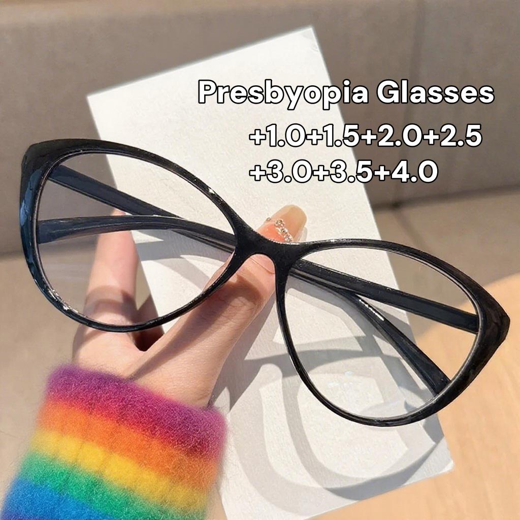 Retro Oversize Cat Eye Reading Glasses Fashion Women Large Frame Decorative Eyewear Men Presbyopic Anti Blue Light Eyeglasses