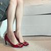 H-25 2025 Spring New Huizhou Women's Shoes French Not Tired Feet Shallow Mouth Square Head Fashion High Heels Single Shoes