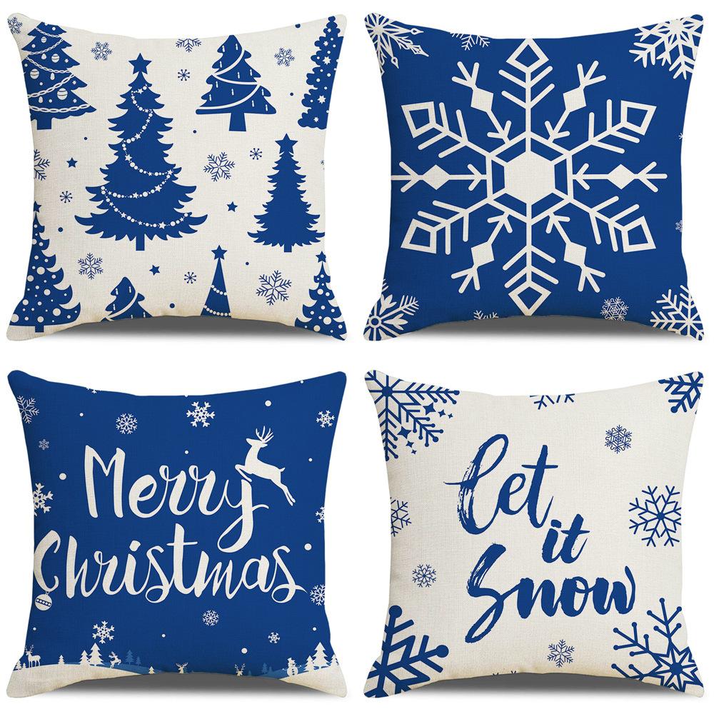 Blue and White Simple Printed Linen Pillow Cover Christmas Cushion Cushion Cover Christmas Home Decoration