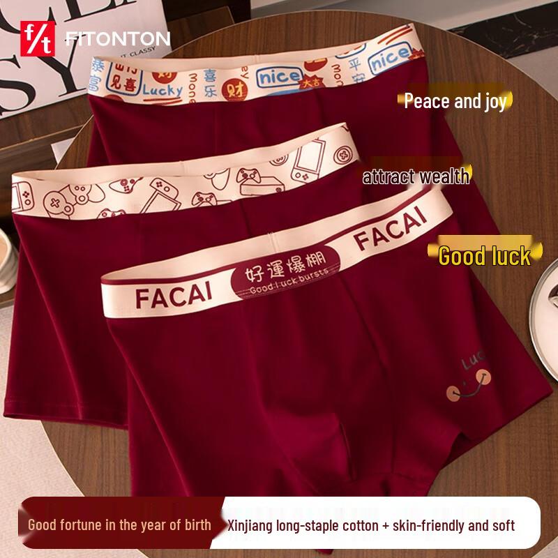 FitonTon Men's Lucky Red Cotton Boxer Briefs 3-Pack