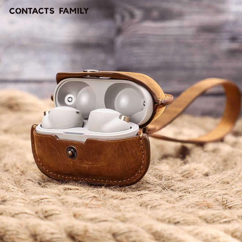 Sony WF-1000XM4 Leather Protective Case with Lanyard for Bluetooth Earphones
