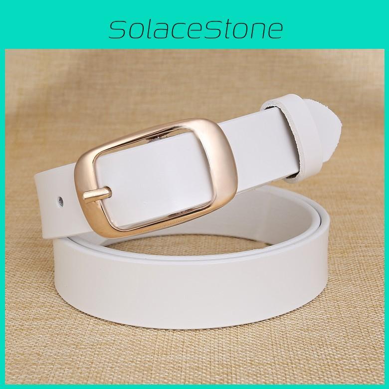 This women's leather belt features genuine two-layer cowhide material, delivering durability and a refined look. It measures approximately 3cm in width and is available in lengths of 105-120cm. The alloy buckle with a Y-shaped closure provides a secure fit. Ideal for office attire or daily casual wear, this versatile fashion accessory complements various outfits and styles. Easy to maintain, it can be wiped clean with a damp cloth to preserve its sleek appearance.