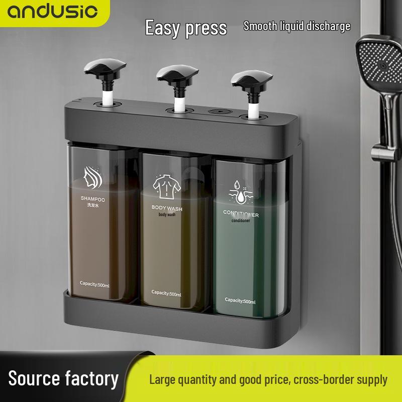 Punch-Free Wall-Mount Soap Dispenser for Shampoo & Shower Gel, Manual Press, Light Luxury Style