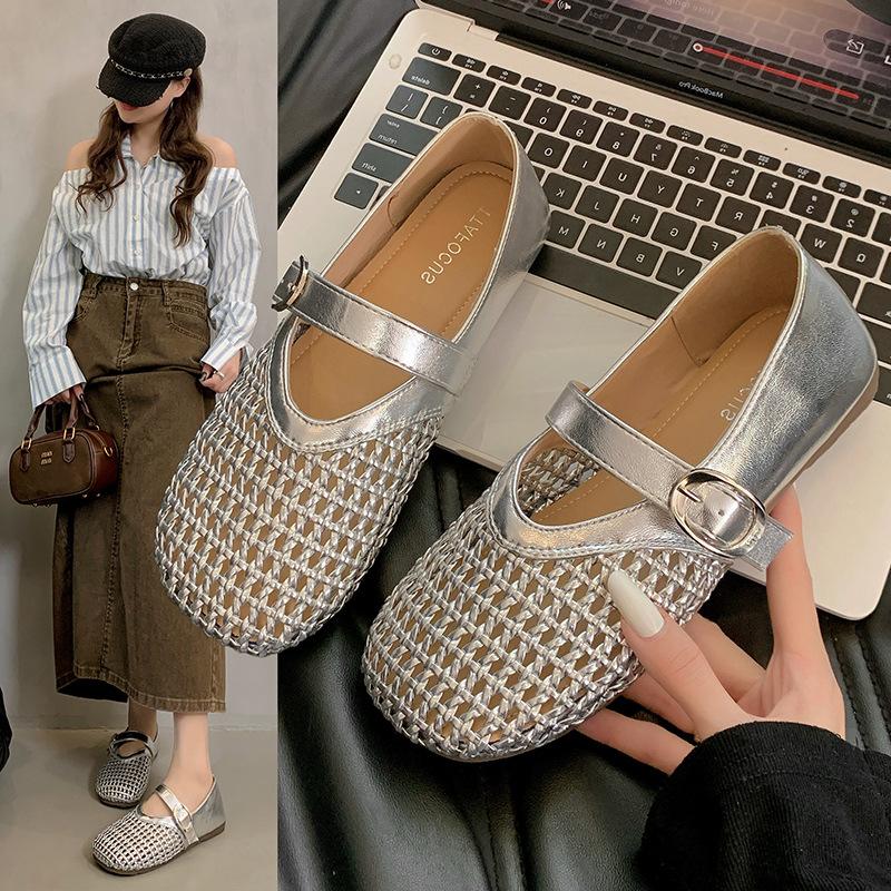 Casual Versatile Bag Head Half Slippers Outer Wear Women's Shoes 2025 New Summer Hollow Breathable Flat-soled Single Shoes