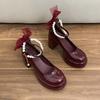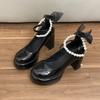 Mary Jane High Heels Women's 2025 Spring and Autumn New Thick Heel Single Shoes Fairy Style Pearl Chain High Heel Single Shoes Small Leather Shoes
